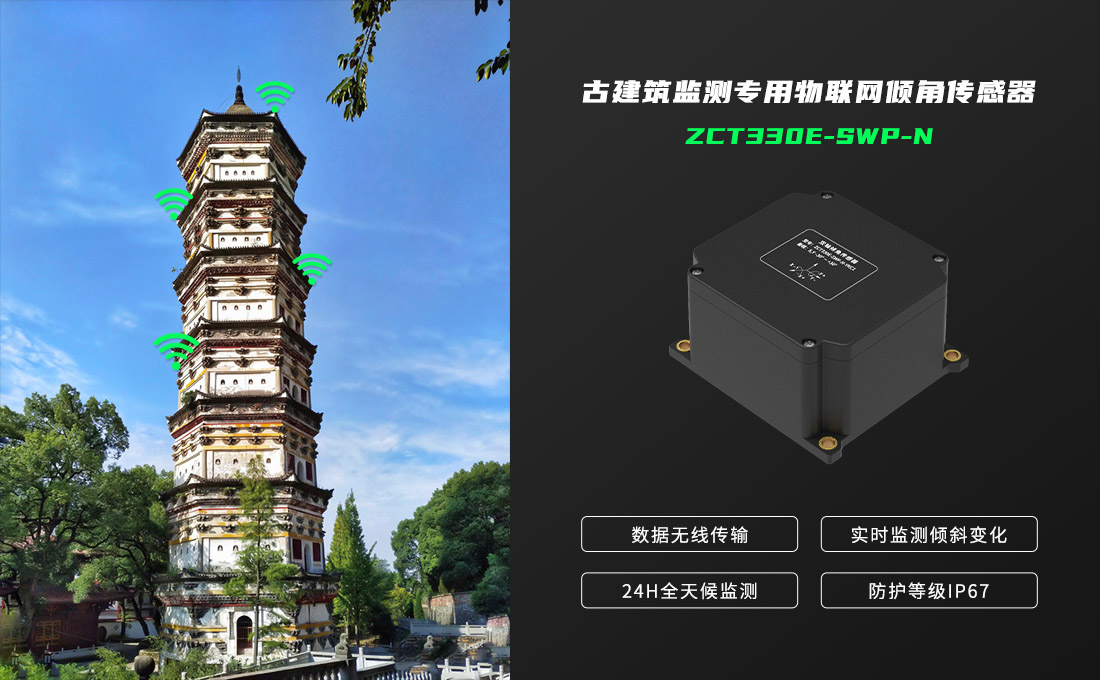 为保证塔身健康,特选用直川科技研发的基于NB-IOT的物联网倾角传感器(其型号为ZCT330E-SWP-N),固定在建筑物上,全方位监测角度变化,防止发生倾倒。一方面,可以随时查看塔的健康状况;另一方面可以通过长期监控,对古建筑做健康预测。直川科技研发的此款无线倾角传感器,可24小时全天候安全防倾倒监测。通过手机APP终端,可实现实时查看建筑物状况,当倾斜高于设定值的时候,手机端即会发出警报。直川科技自主研发的客户端软件,功能强大,除了自动报警,还可以显示具体位置(经度、纬度)。软件后台可以查看历史数据,随时发现数据变化。