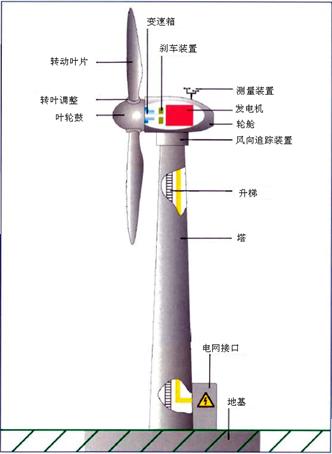 风力能源是清洁能源,风力发电过程中风电塔的安全非常重要。由于风电塔是固定在地面上的,塔身与地基相连,使用过程中地基的变化和上部荷载均在塔身变形中 有所体现。各种危险因素如地基沉降,大风长时间侵袭,连接螺栓松动,安装失误,超期服役材料老化变形等都可发展成为倾倒的危险,所以要在塔身上部安装,大多数是安装在塔身顶部测量装置部分,如下图