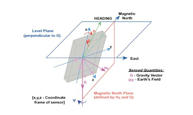 用地磁场在X和Y的两个分矢量值便可确定方位值:
