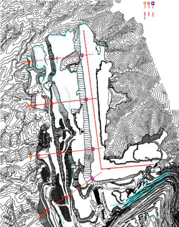 山西省太原市娄烦县太钢尖山铁矿是为一大型山坡露天矿,需要将开采剥离覆盖在矿床上部及其周围的表土和岩石,运至专设的场地废弃,这种专设的场地称为排土场。排土场和尾矿库一样,也是一个具有高势能的人造泥石流危险源,存在溃坝危险,一旦失事,容易造成重特大事故。需要对其进行安全监测。