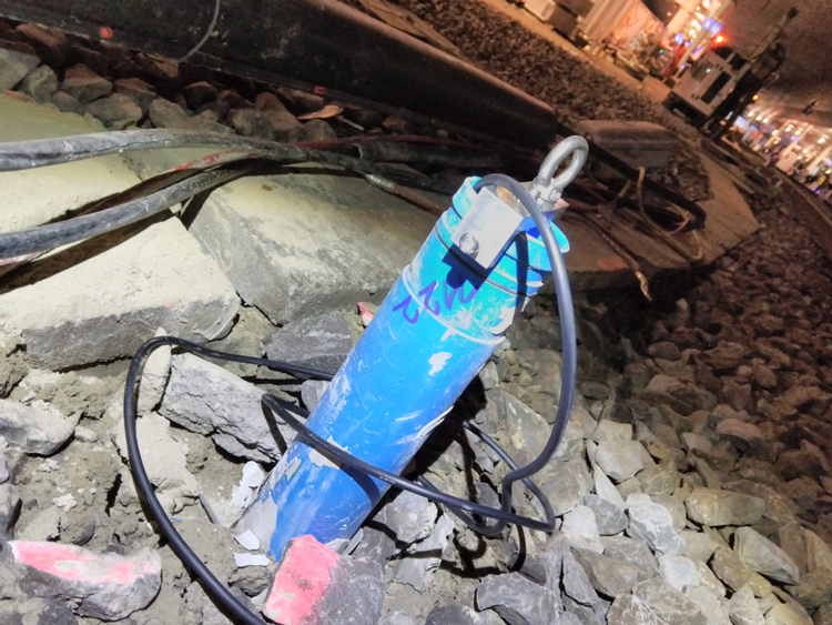 本项目施工现场位于若干处关键铁轨路基,共计打出40个探洞,每个探洞内含5-10根连成一串、传感间隔2米的探头,共计使用了225根探头以及15台直川科技自主研发的无线数据采集器。