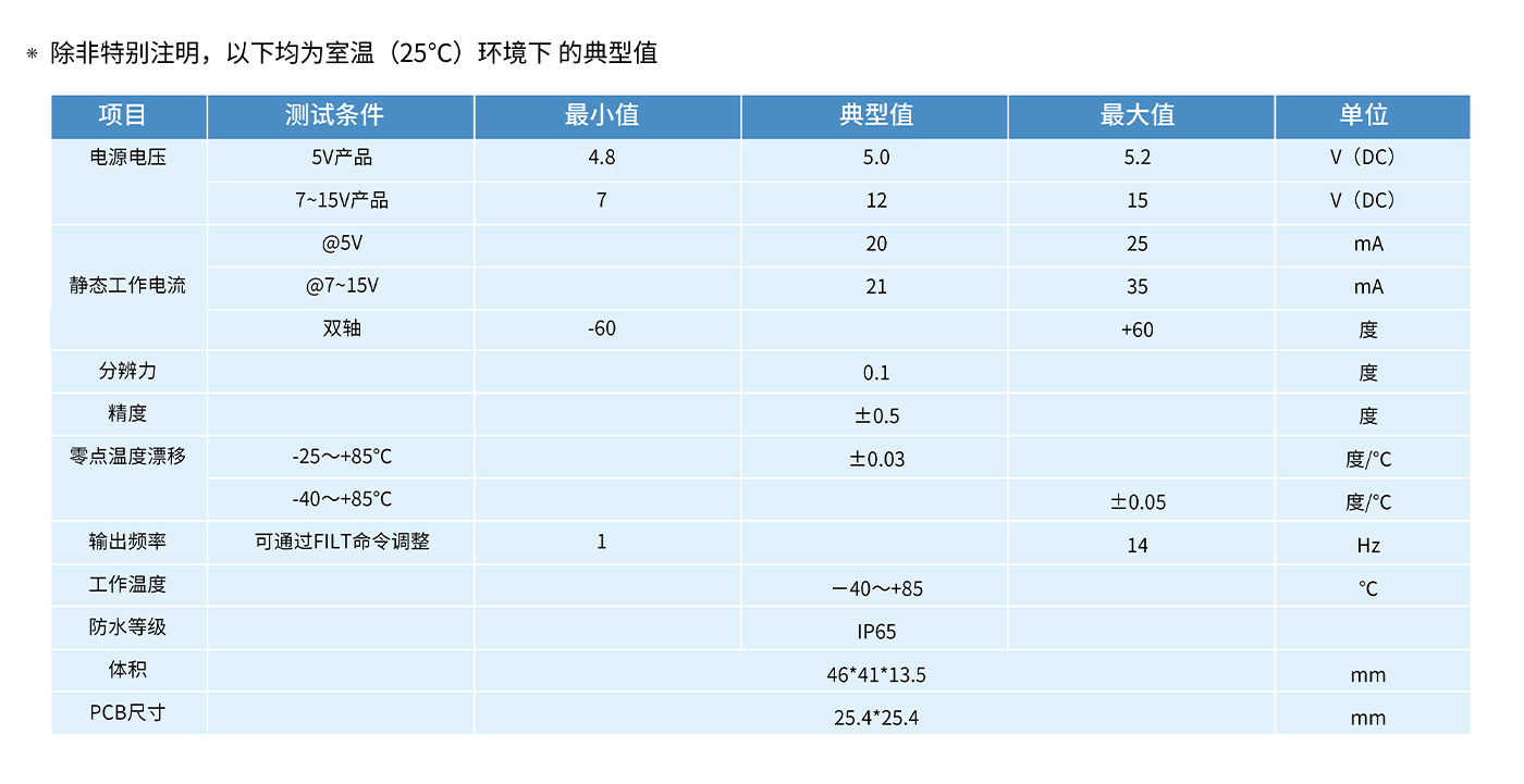 ZCT245J-LAQ-17 为直川科技研发生产的系列双轴倾角传感器,最大测角范围双轴正负 60 度。本产品输出采用全双工通信方式,具有零点设定、波特率可选等功能。