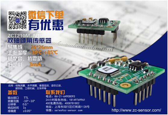但是倾角传感器在工作时,一般都要测量当前工作臂的倾斜角度和当前工作的水平面的角度,控制系统通过当前物体的重量和当前工作的角度,来计算当前的工作是否是在安全的范围内,能保证当前的工作不会发生翻车等工作现像。这样就保证了整体的安全性。