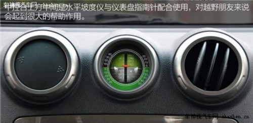 中控台上方中间是水平坡度仪与仪表盘指南针配合使用,对越野朋友来说会起到很大的帮助作用。如下图所示。
