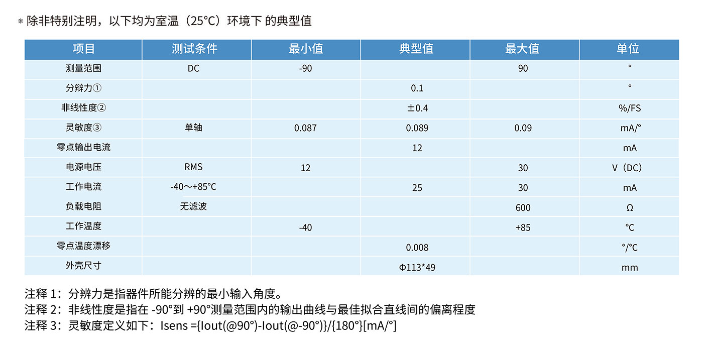ZCT1K0J-SPS-A 是直川科技研发生产的一款单轴电流型传感器,测量范围是 -90–90°,以标准 4 ~20mA 模拟电流输出。良好的抗干扰特性,适合远距离的信号传输。